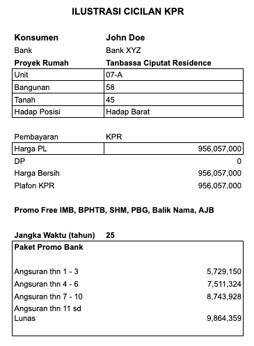 Contoh Ilustrasi KPR